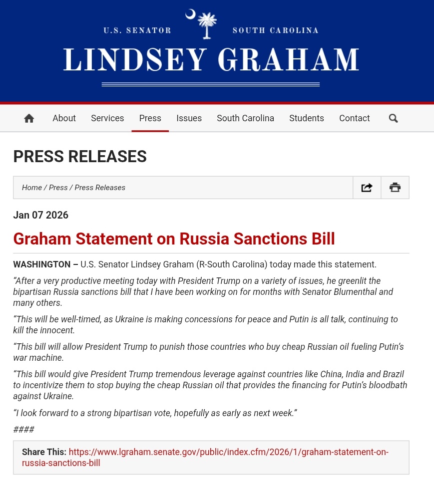 If you think this is just about oil, you are mistaken. The Lindsey Graham sanctions bill (formally the Sanctioning Russia Act 2025) is designed as “maximum leverage.” Under this proposed law, the US President would have the power to slap a 500% duty on all goods and services from countries that continue to buy Russian crude.+1